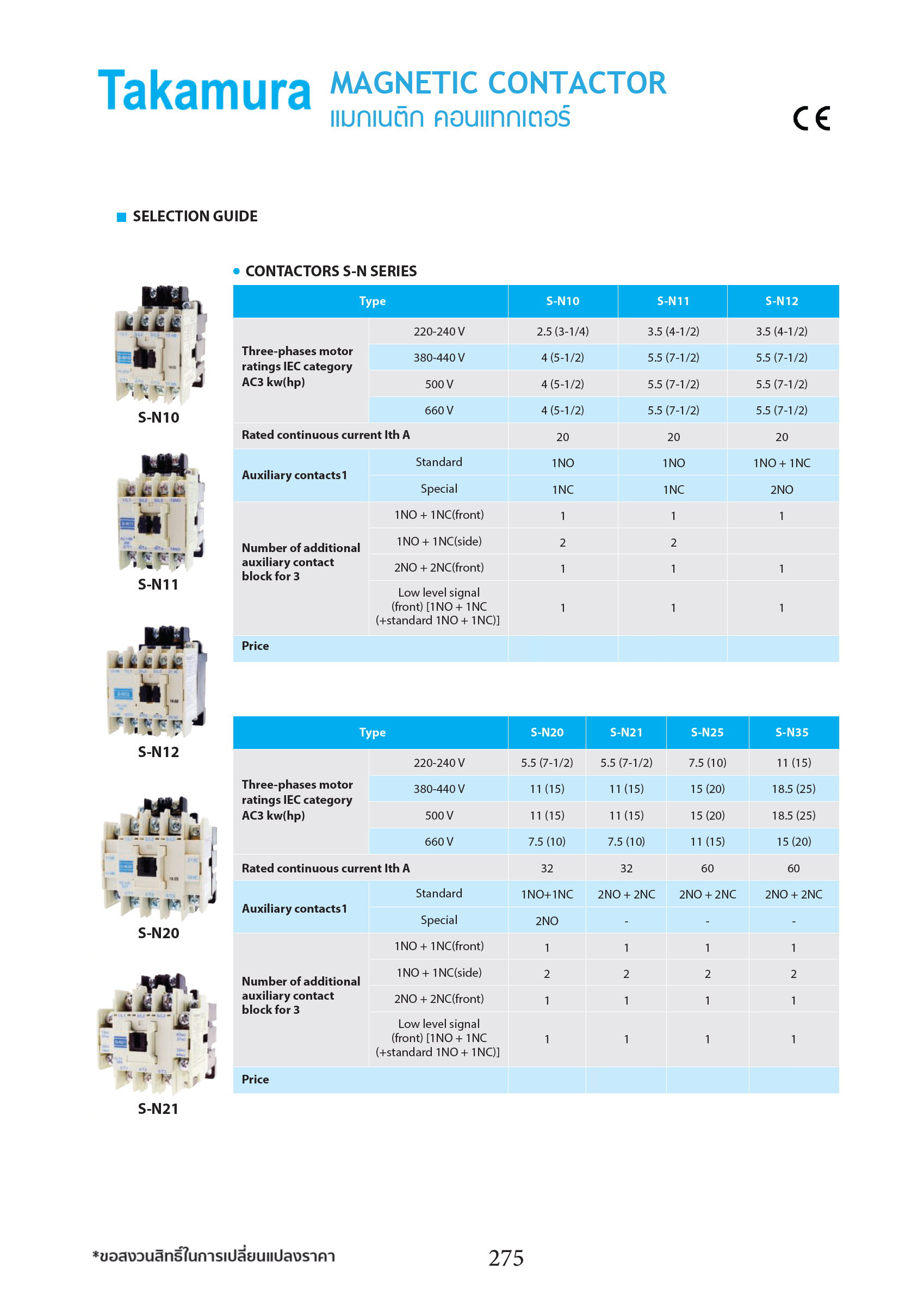 หมวดหมู่ | (TAKAMURA) คอนแทคเตอร์-โอเวอร์โหลดรีเลย์ MAGNETIC CONTRACTOR SN series, TH-N series |