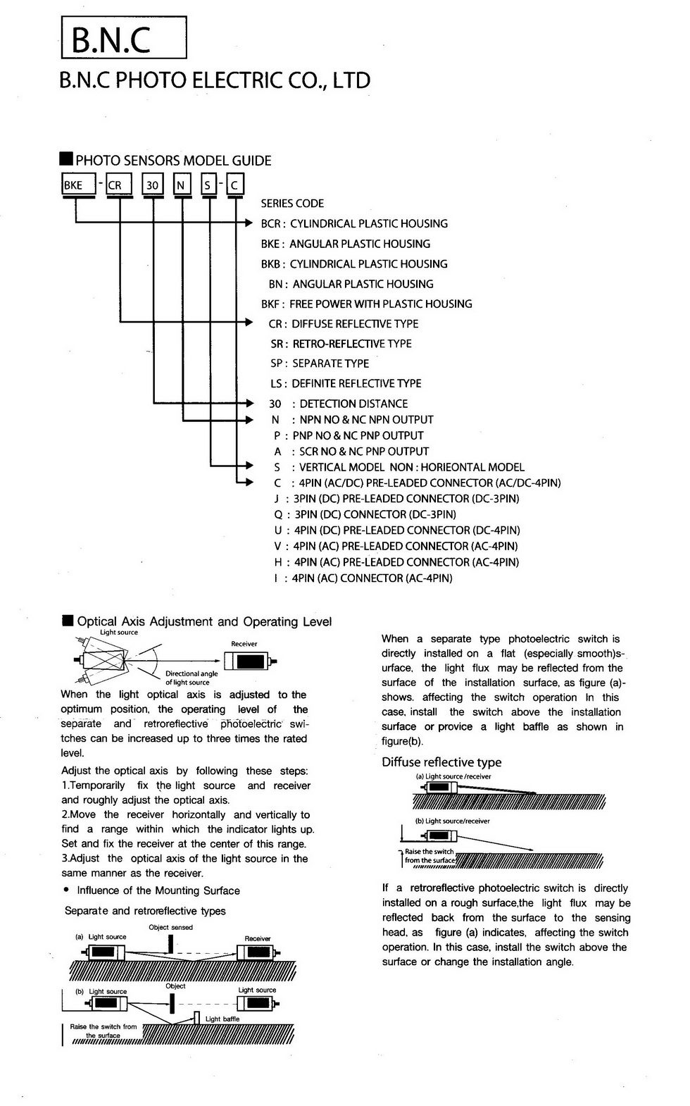 หมวดหมู่ | (BNC) โฟโต้ อิเล็คทริค เซ็นเซอร์ / Photoelectric Sensors |