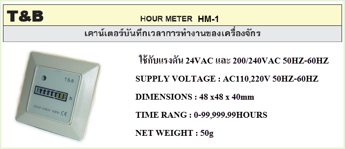 หมวดหมู่ | (T&B) ฮาวมิเตอร์ เครื่องนับชั่วโมงการทำงาน / Hour Meter |