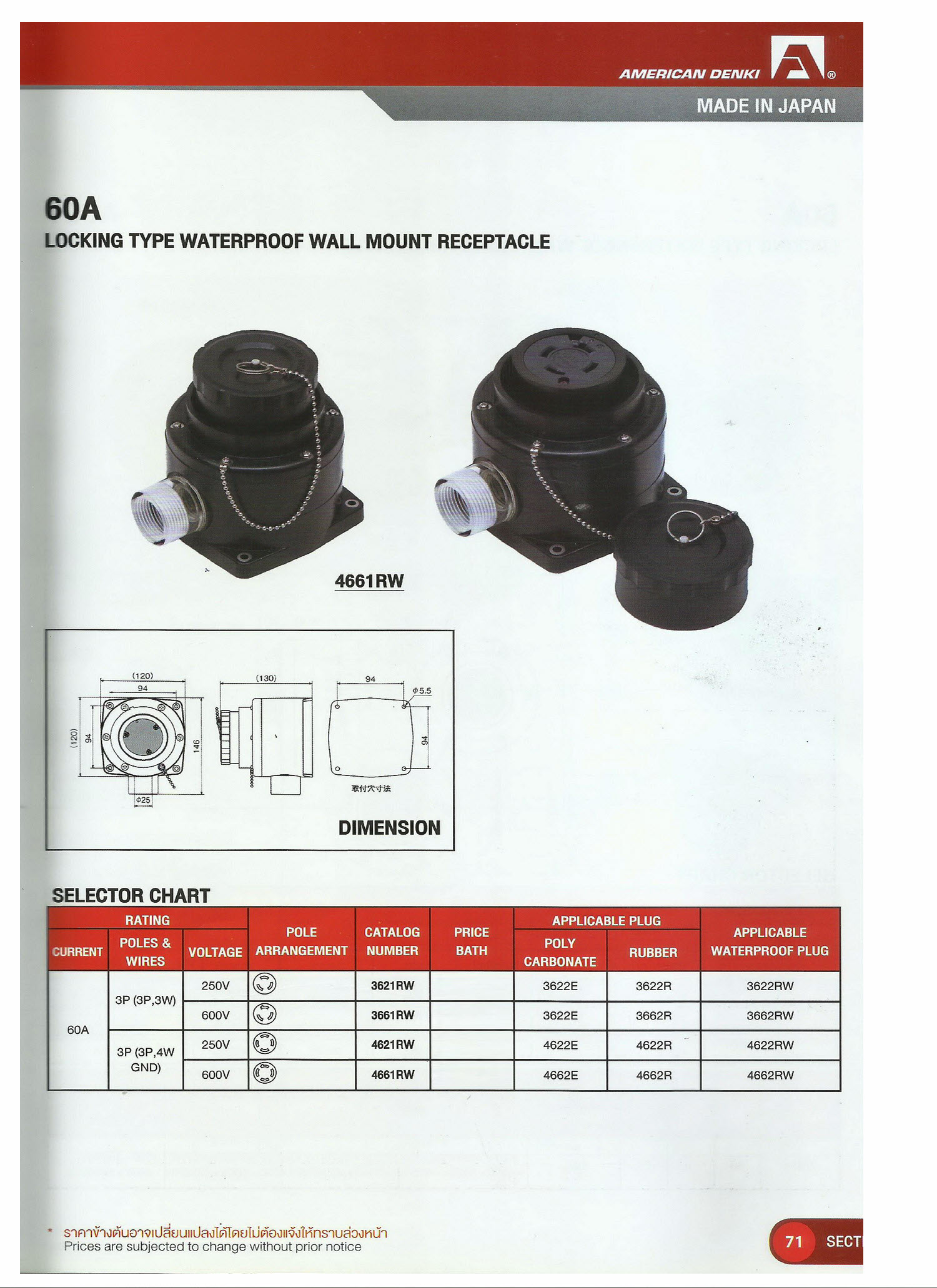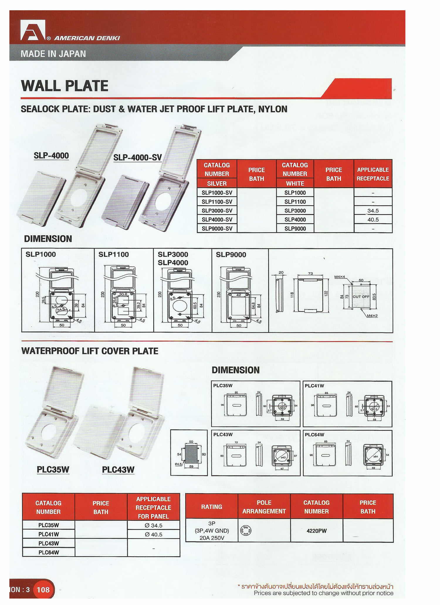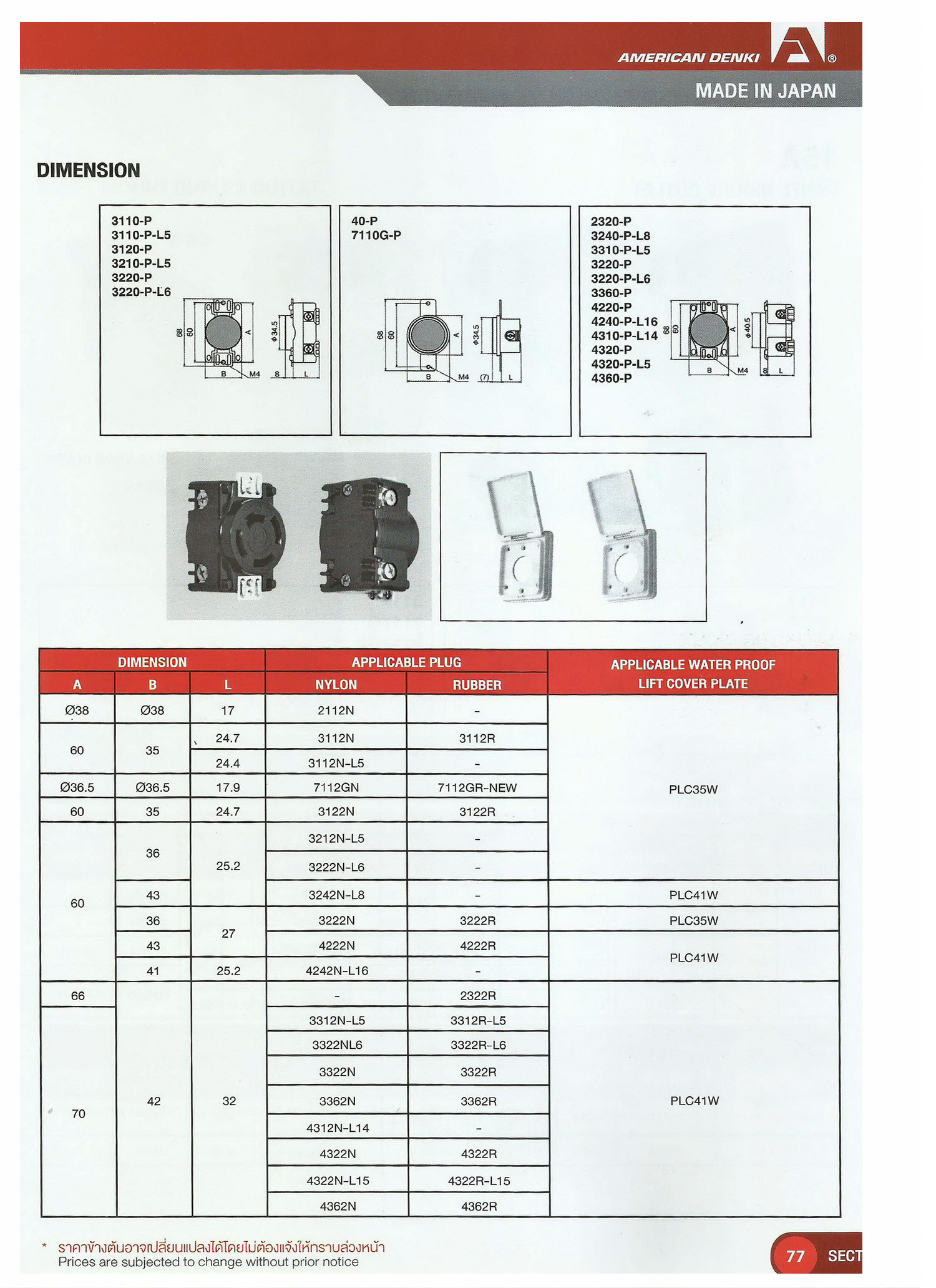 *ราคาตาม Pricelist เป็นราคาตั้งไม่รวม vat และส่วนลด, โทรเข้ามาสอบถามส่วนลดสินค้ากับทางร้านนะครับ Notice: (ราคาตั้งเป็นราคาเบื่องต้นของแคตตาล็อกสินค้าปีนั้นๆ และอาจมีการเปลี่ยนแปลงได้ตลอดเวลา โปรดติดต่อกับทางร้านค้าสอบถามอีกทีนะครับ) (Prices maybe changed without notice according to the latest up-to-date of Product Catalogs)