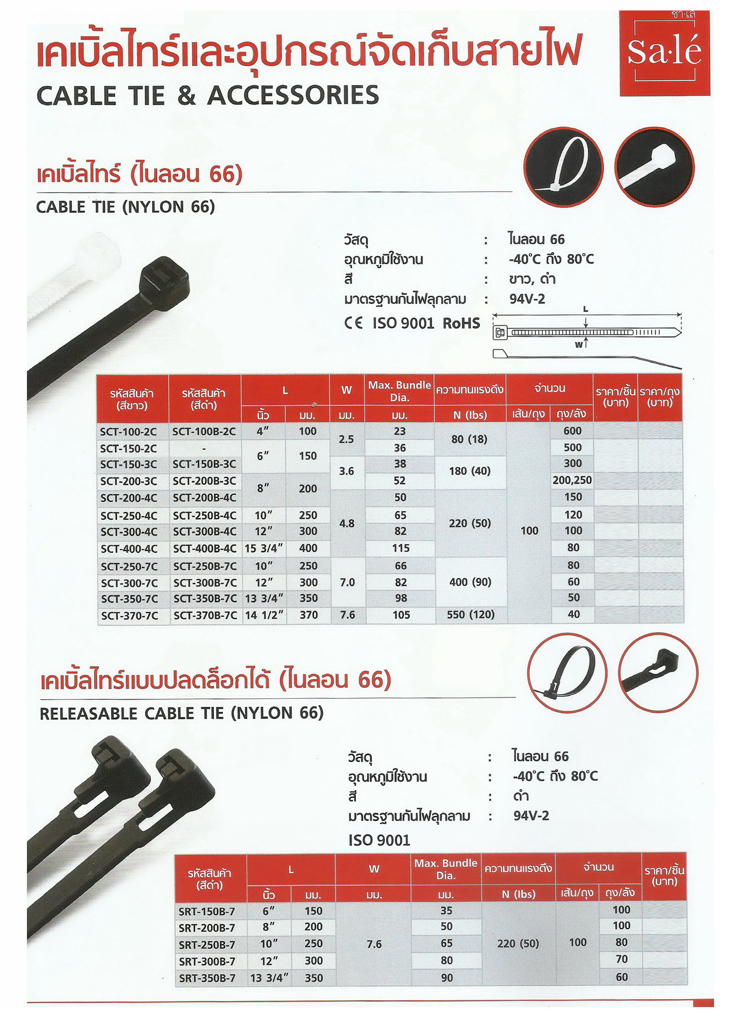 SA-LE_ซาเล่ SCT-100-2C SCT-100B-2C SCT-150-2C SCT-150-3C SCT-150B-3C SCT-200-3C SCT-200B-3C SCT-200-4C SCT-200B-4C SCT-250-4C SCT-250B-4C SCT-300-4C SCT-300B-4C SCT-400-4C SCT-400B-4C SCT-250-70 SCT-250B-7C SCT-300-7C SCT-300B-7C SCT-350-7C SCT-350B-7C SCT-370-7C SCT-370B-7C SRT-150B-7 SRT-200B-7 SRT-250B-7 SRT-300B-7 SRT-350B-7 Cable Ties
