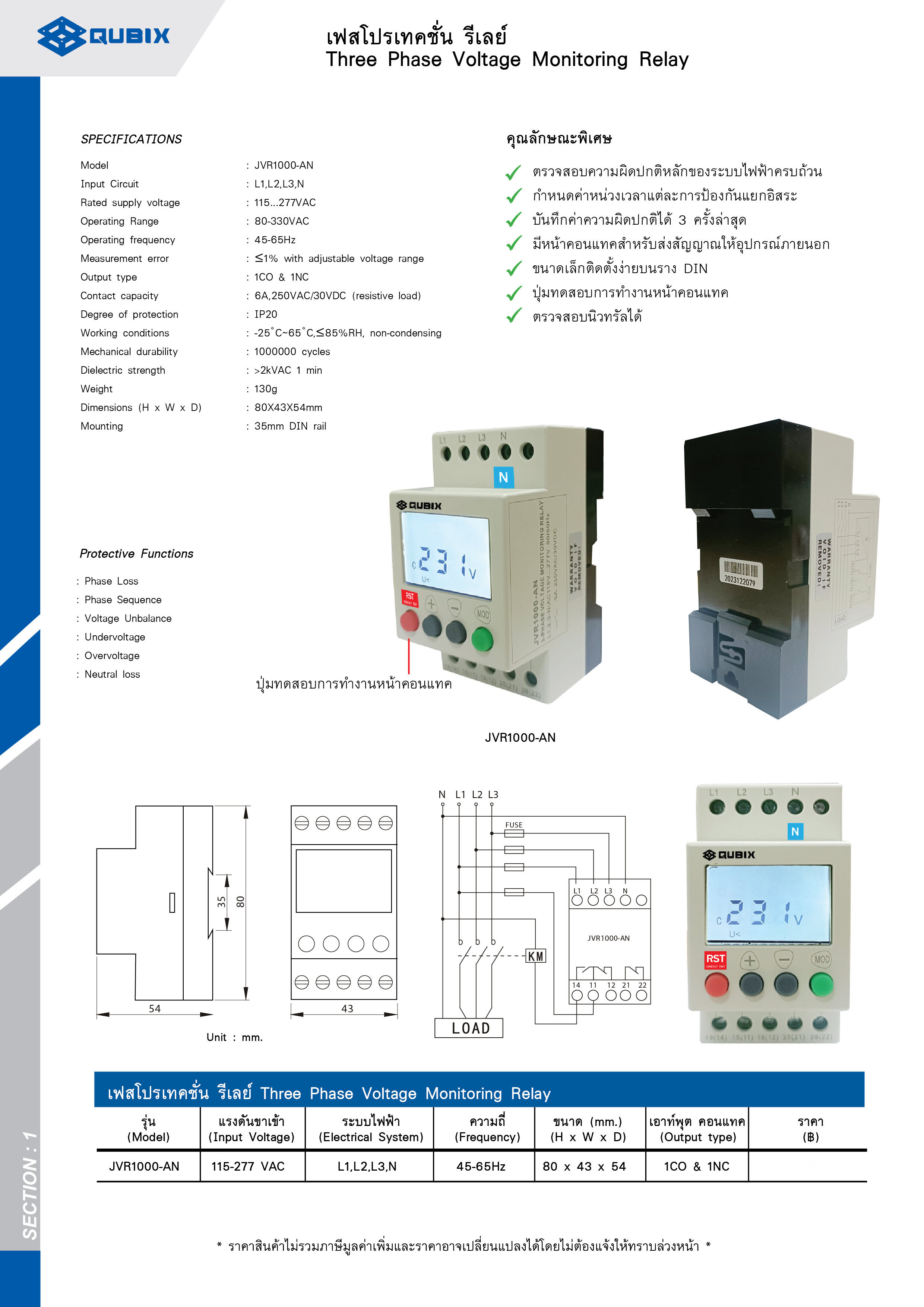 หมวดหมู่ | (QUBIX) เฟสโปรเทคชั่น รีเลย์ Three Phase Voltage Monitoring Relay |