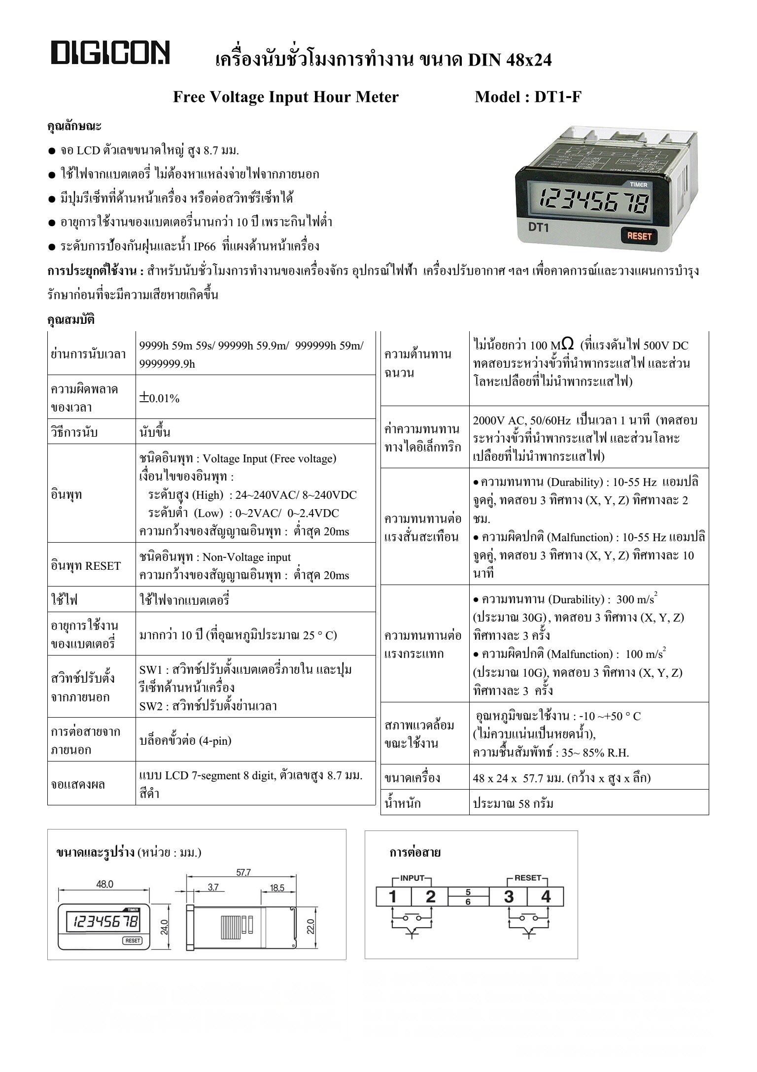 | หมวดหมู่ | (DIGICON) ฮาวร์มิเตอร์ ดิจิตอล / เครื่องนับชั่วโมงการทำงาน ขนาด DIN 48X24 Free Voltage Input Hour Meter |