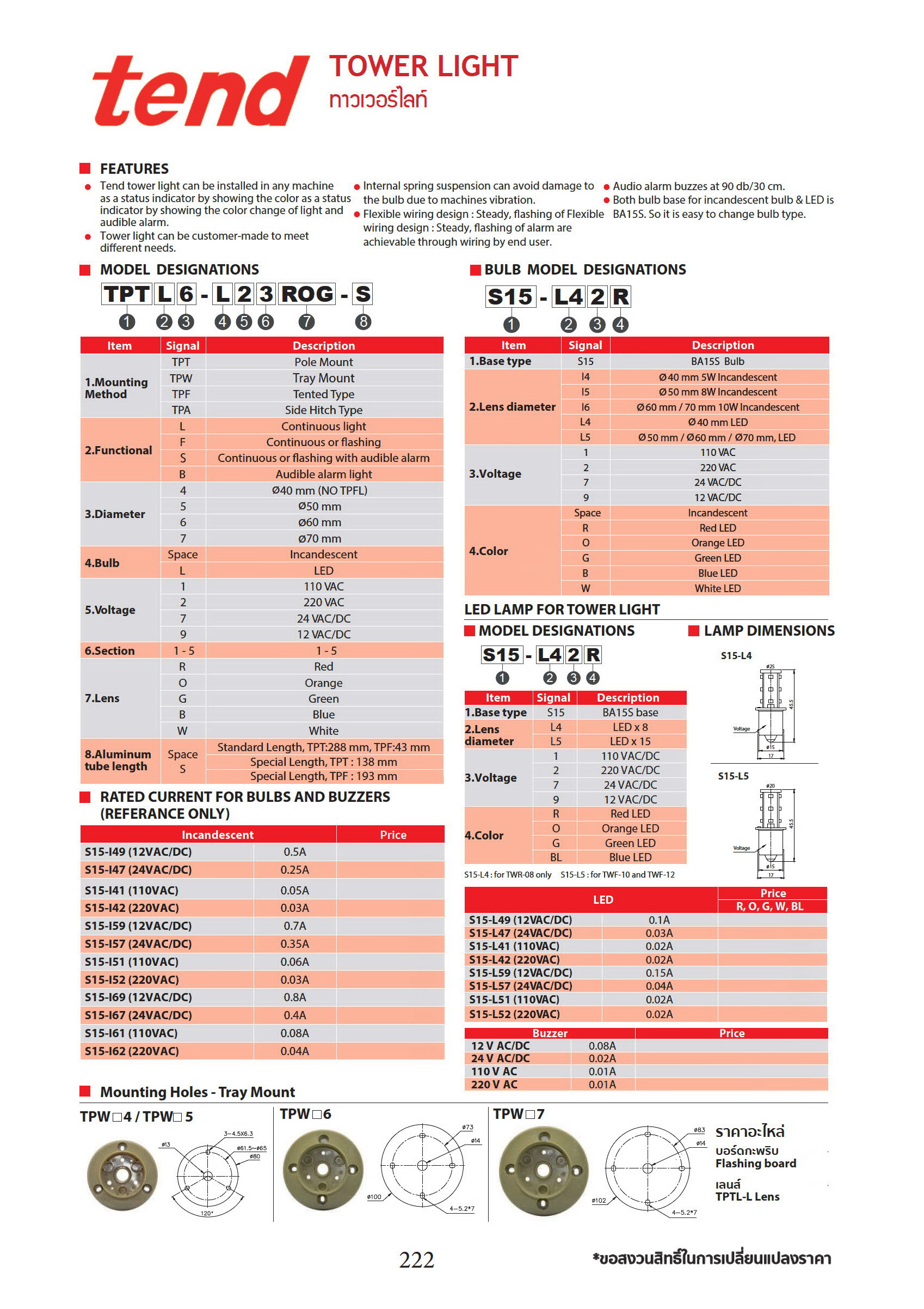 หมวดหมู่ | (TEND) ทาวเวอร์ไลท์ (ไฟเสาตึก ไฟสัญญาณ ไฟกระพริบ) TOWER LIGHT, OBSTRUCTION MAKER LIGHT |