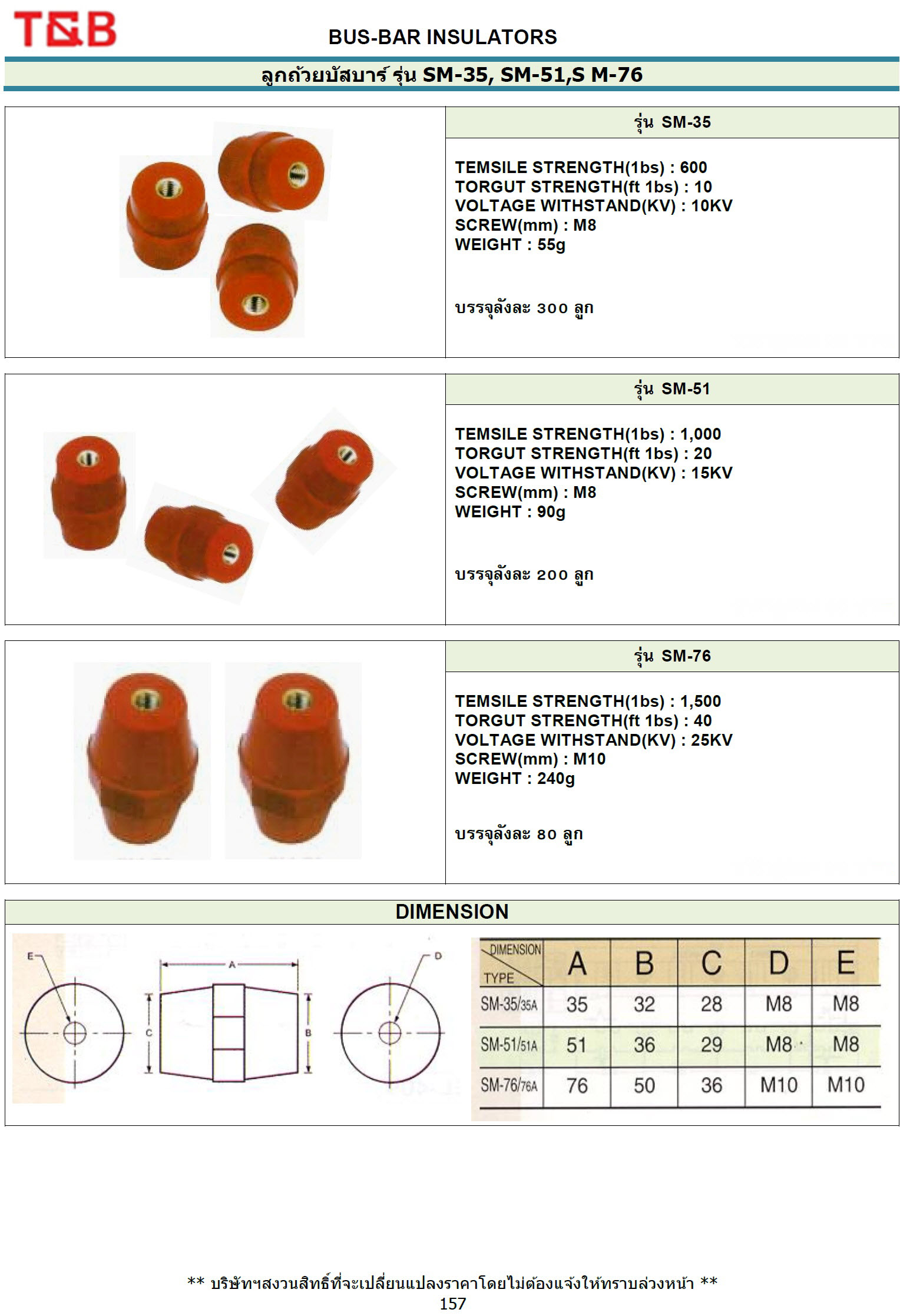 หมวดหมู่ | (T&B), (RESHO) ลูกถ้วยบัสบาร์ แบน/กลม และ ประกับบาร์ / BUS-BAR INSULATORS & SUPPORT |