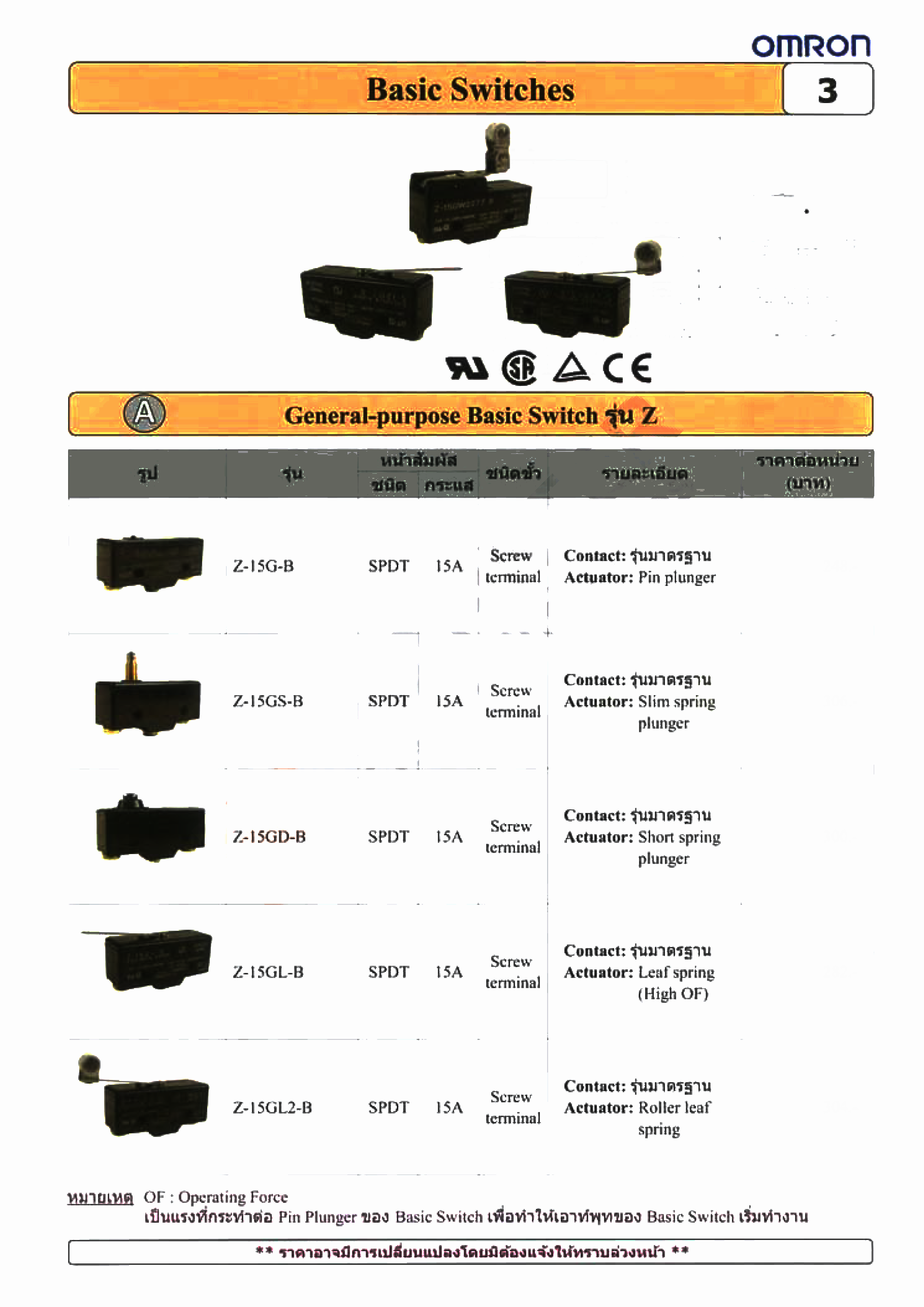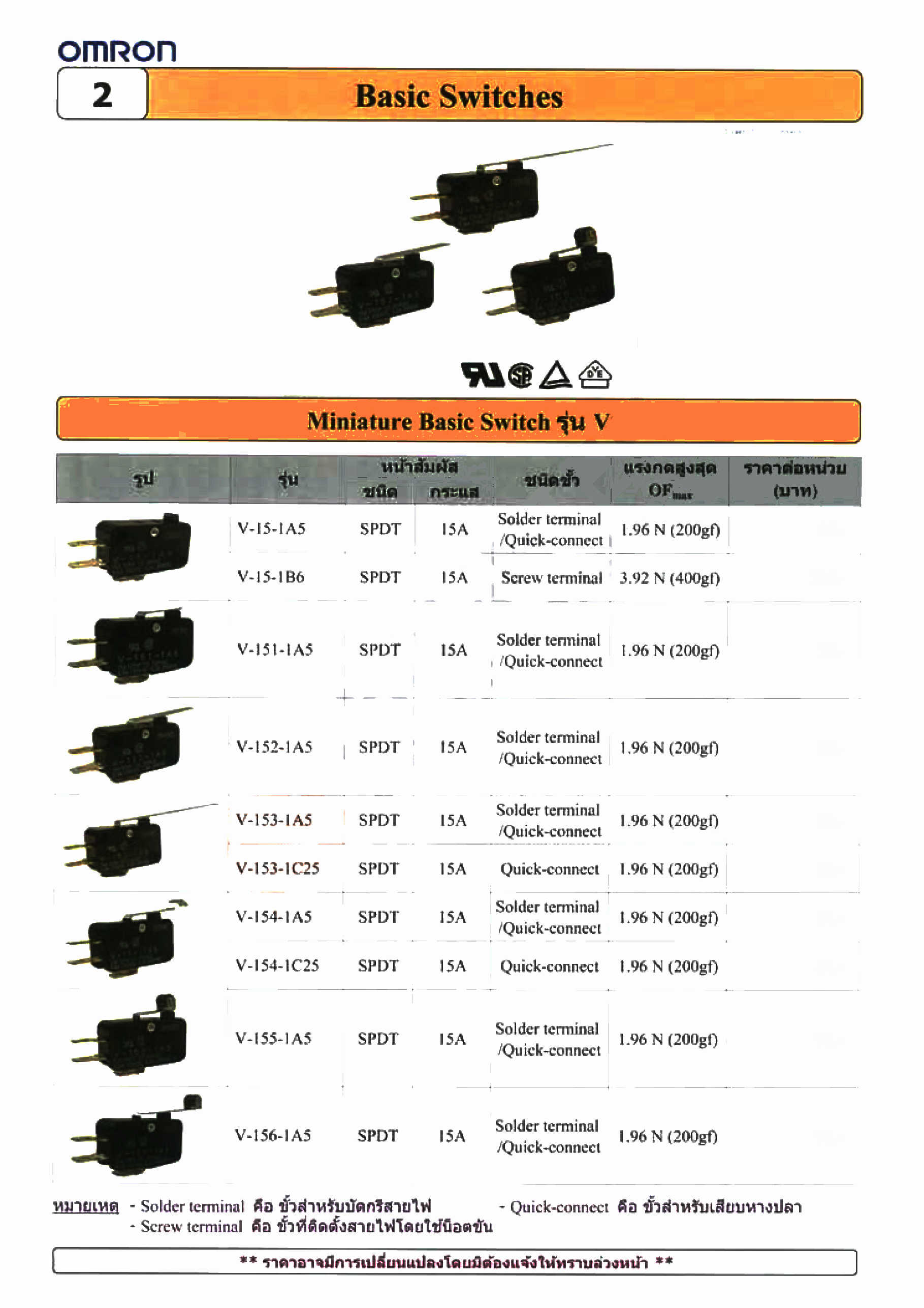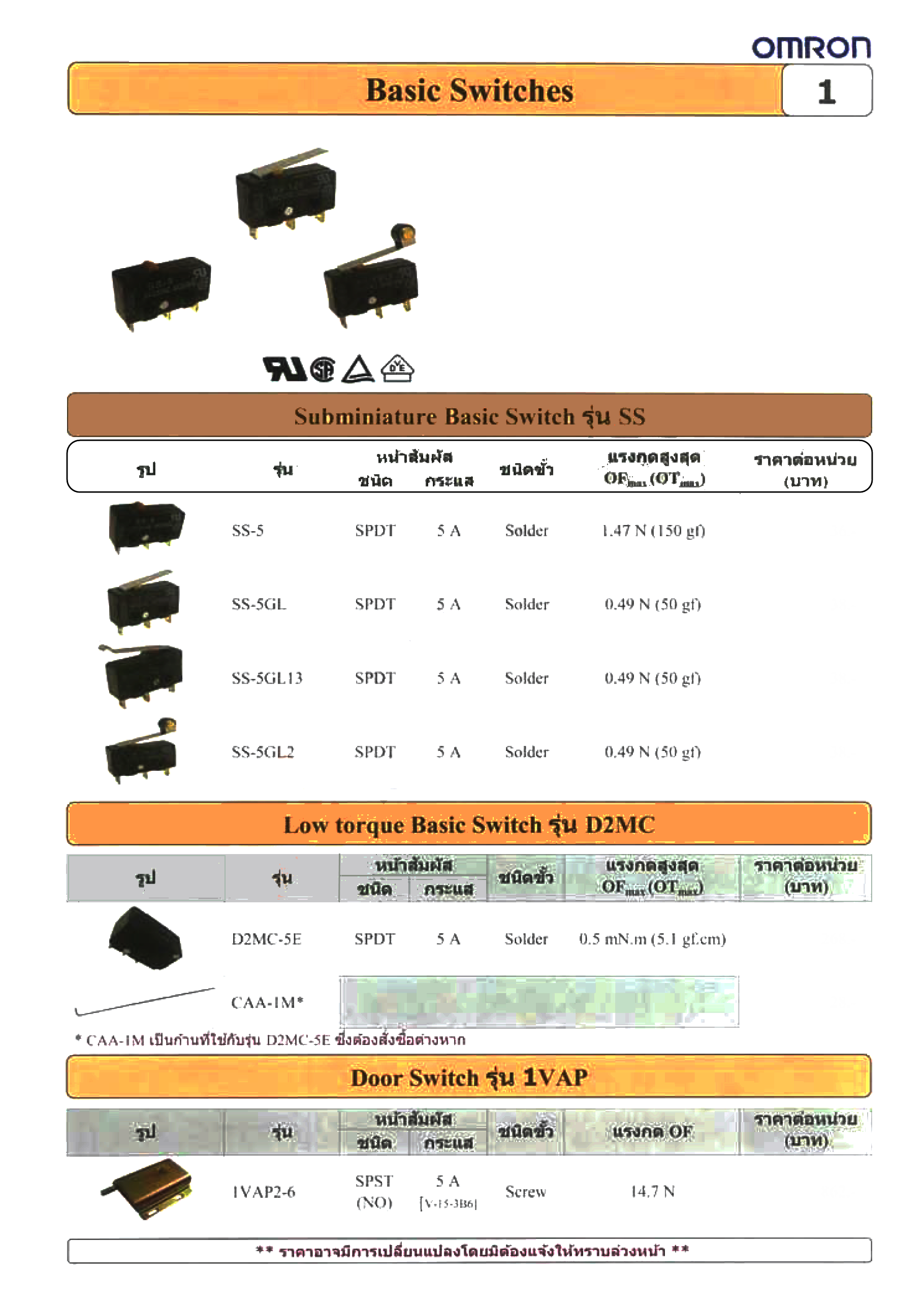 หมวดหมู่ | (OMRON) ไมโครสวิทช์ Micro Switch / เบสิกสวิทช์ BASIC SWITCH |