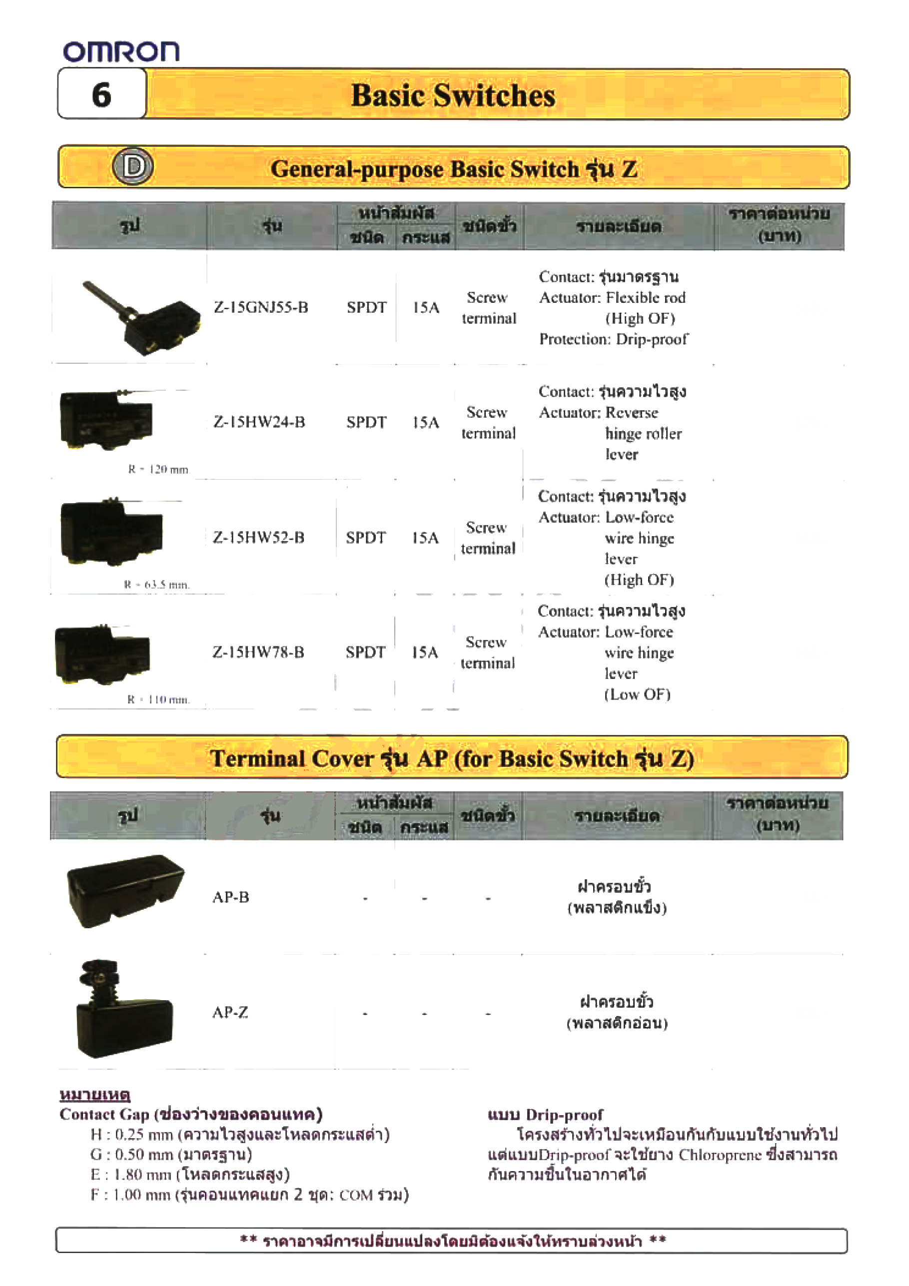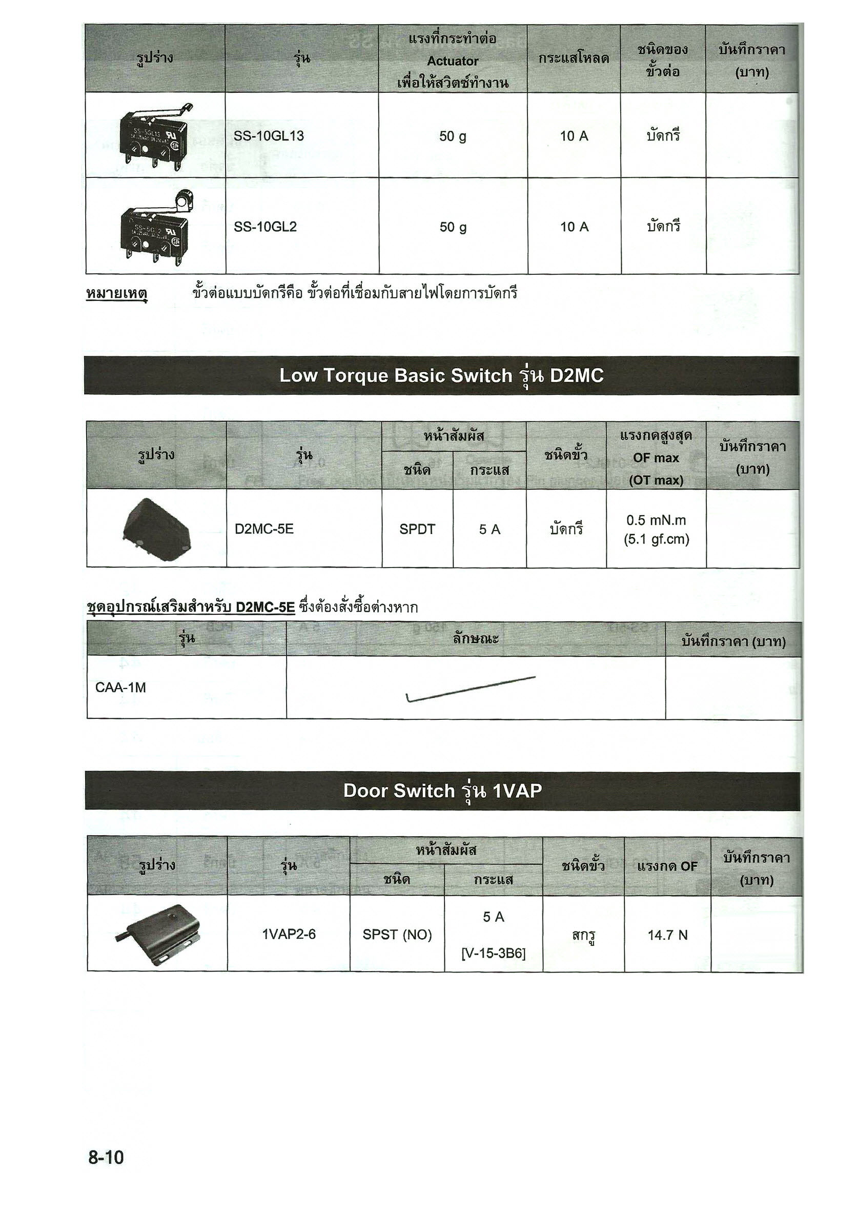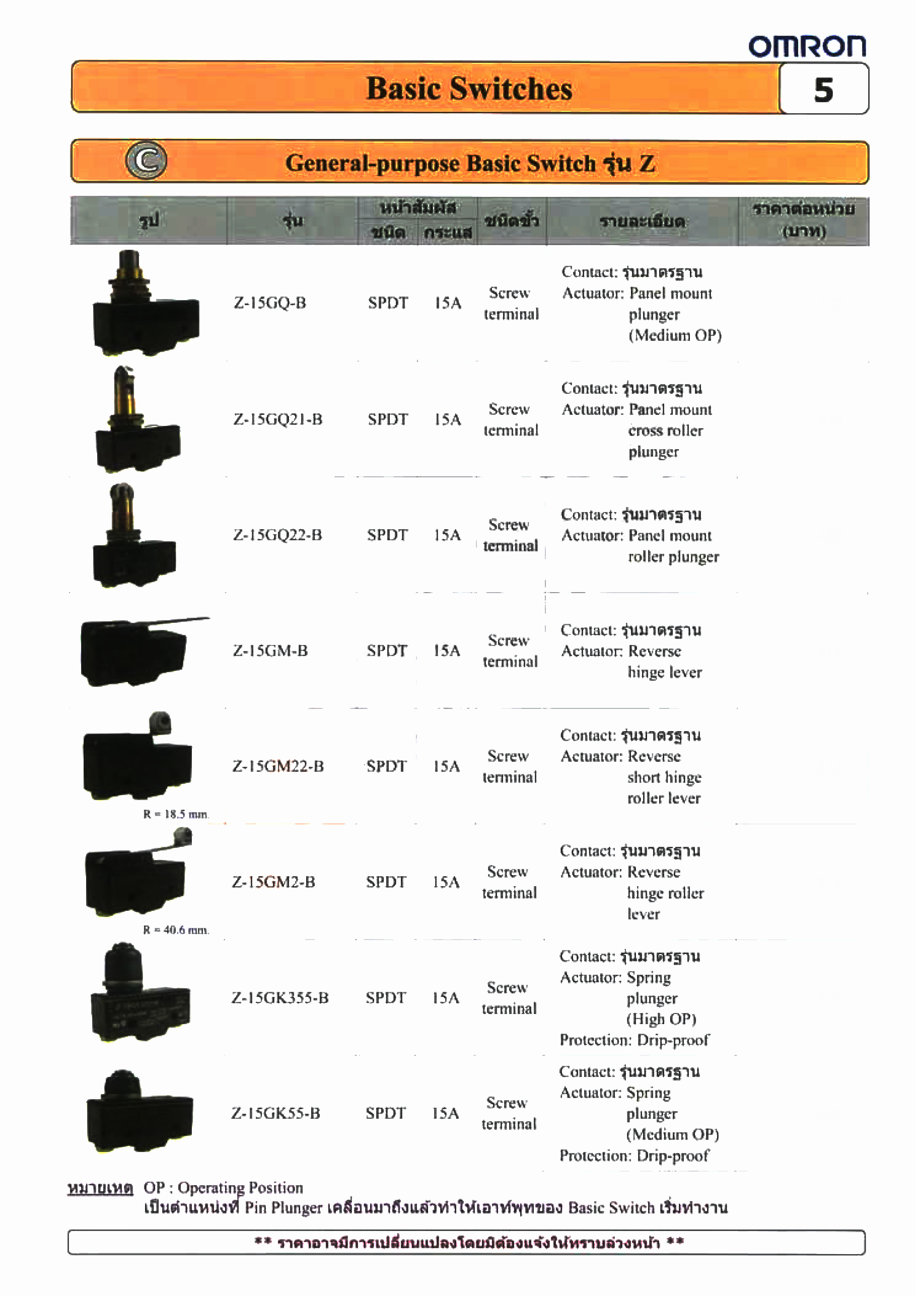หมวดหมู่ | (OMRON) ไมโครสวิทช์ Micro Switch / เบสิกสวิทช์ BASIC SWITCH |